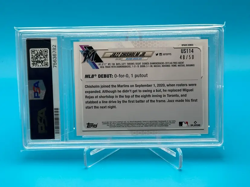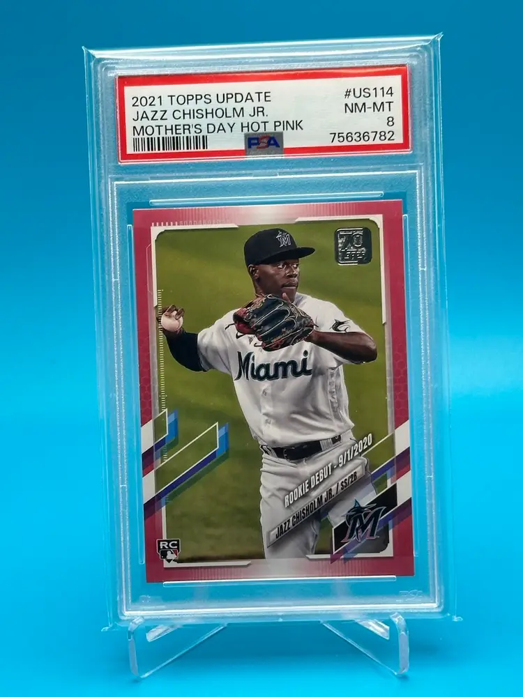 2021 Topps Update Jazz Chisholm Jr. Rookie Debut Mother’s Day Pink /50 PSA 8 Miami Marlins / New York Yankees