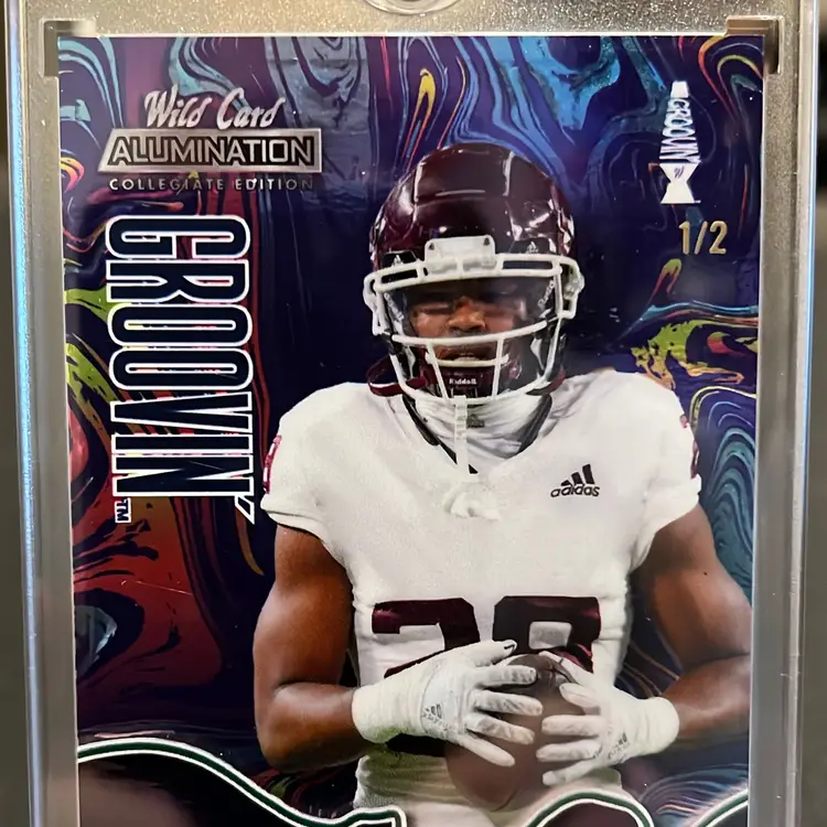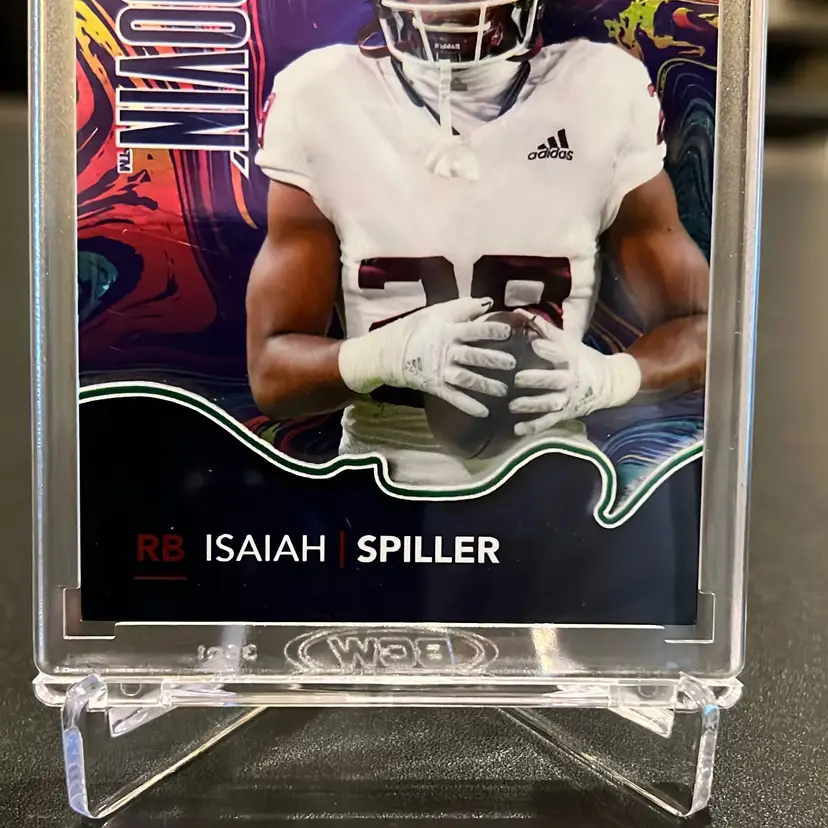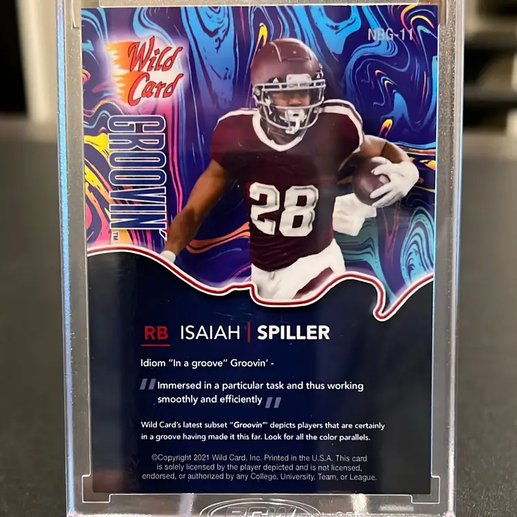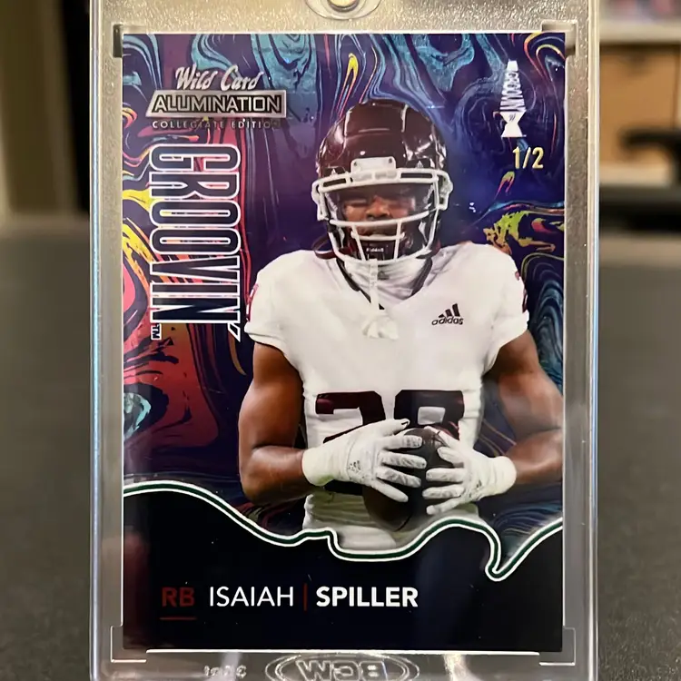 2021 Wild Card Alumination NIL Isaiah Spiller 1/2 Groovin Rookie Super Short Print Los Angeles Chargers & Texas A&M Aggies Card No. NBG-11