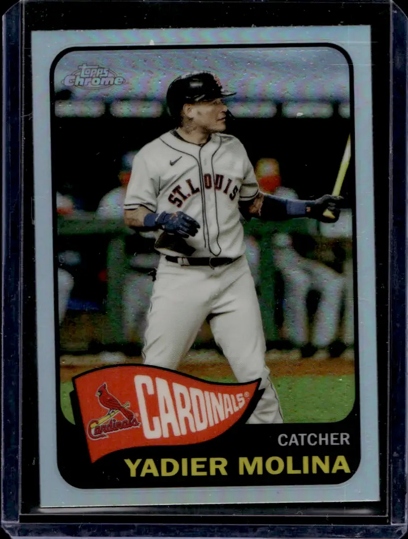 Add this Yadier Molina card from the Topps Chrome series to your collection. A great find for St. Louis Cardinals fans and baseball card enthusiasts.