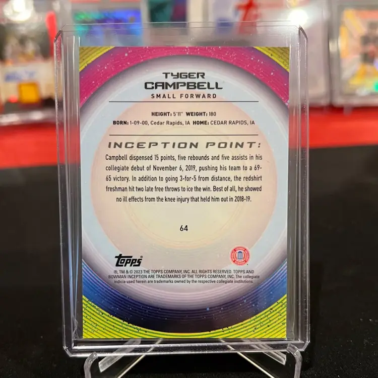 2022-23 Bowman University Inception Tyger Campbell 75/75 Pre-Rookie Card No. 64 UCLA Bruins