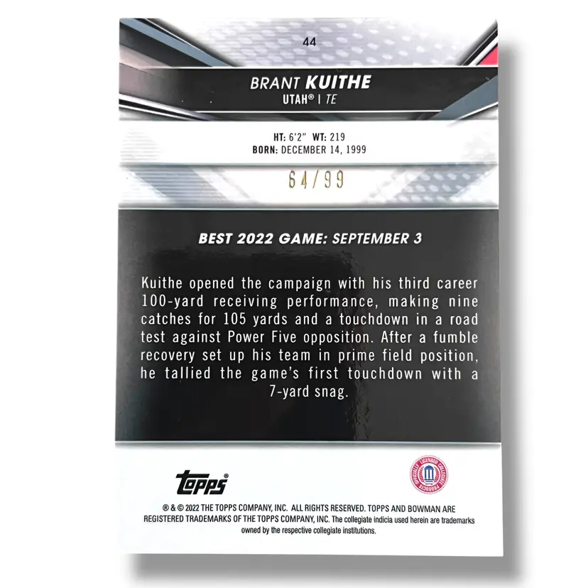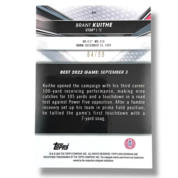 Here We Have a 2022-23 Bowman's Best University Brant Kuithe Green Refractor 64/99