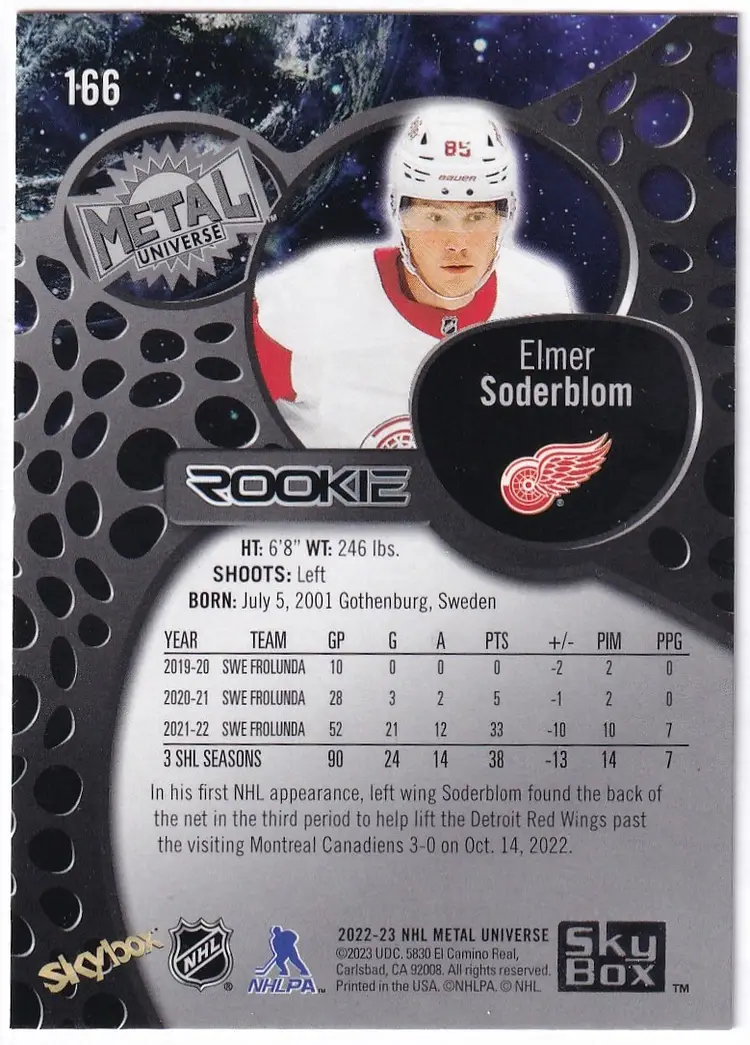 2022-23 Metal Universe #166 Elmer Soderblom RC Detroit Red Wings
