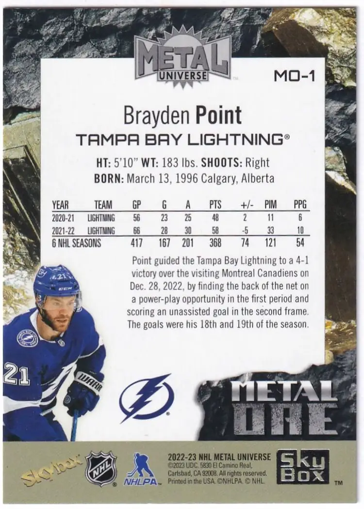 2022-23 Metal Universe Metal Ore #MO1 Brayden Point Tampa Bay Lightning