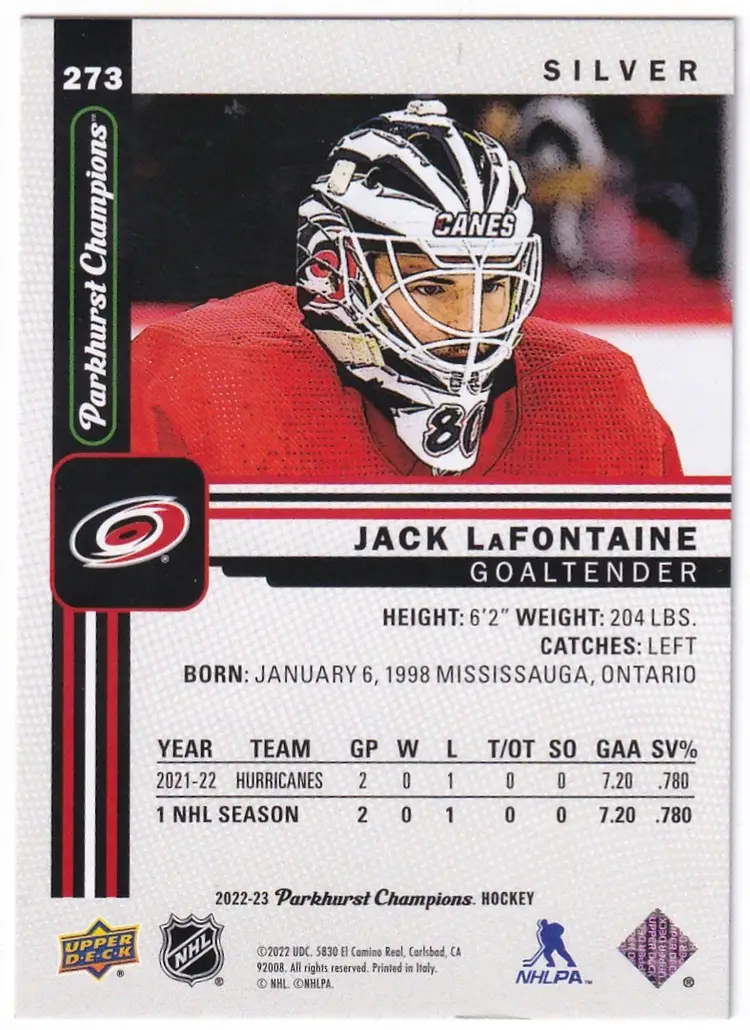 2022-23 Parkhurst Champions Silver #273 Jack LaFontaine Carolina Hurricanes
