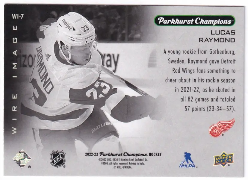 2022-23 Parkhurst Champions Wire Images #WI7 Lucas Raymond Detroit Red Wings