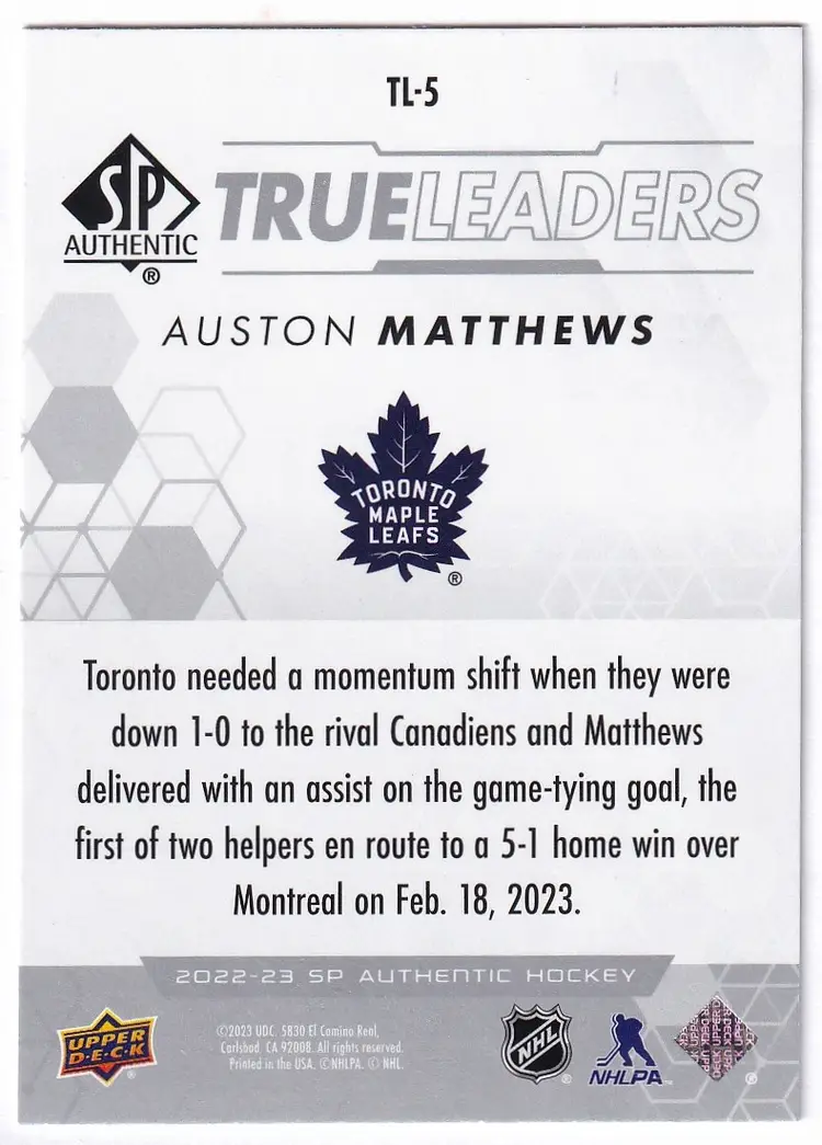 2022-23 SP Authentic True Leaders #TL5 Auston Matthews Toronto Maple Leafs
