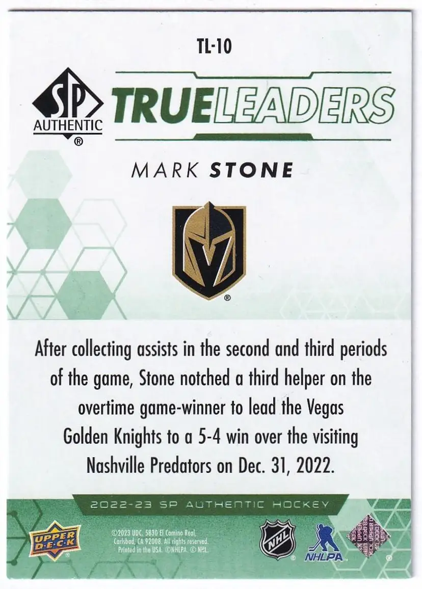 2022-23 SP Authentic True Leaders Green #TL10 Mark Stone Vegas Golden Knights
