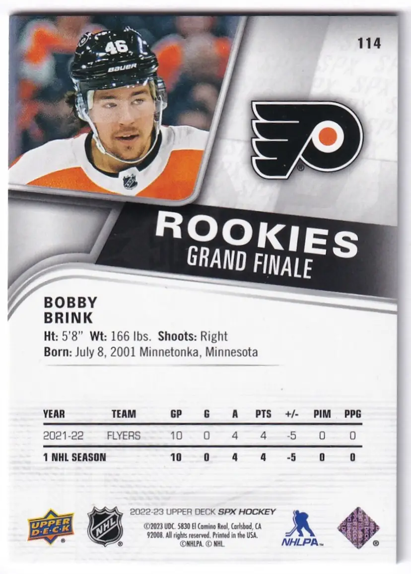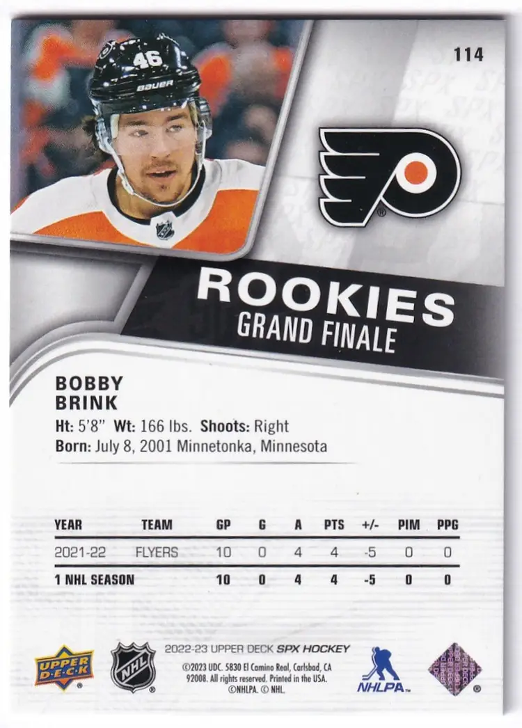 2022-23 SPx Grand Finale #114 Bobby Brink Philadelphia Flyers Print Run - 50