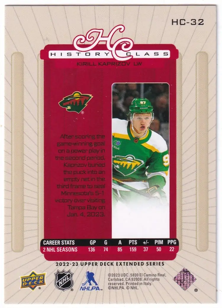 2022-23 Upper Deck '99-00 Upper Deck Retro History Class #HC32 Kirill Kaprizov Minnesota Wild