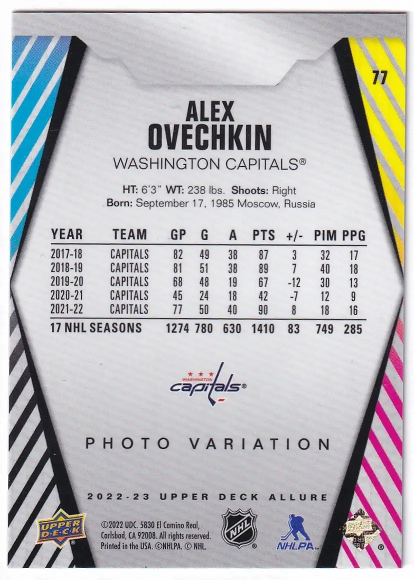 2022-23 Upper Deck Allure Photo Variations #77 Alex Ovechkin Washington Capitals