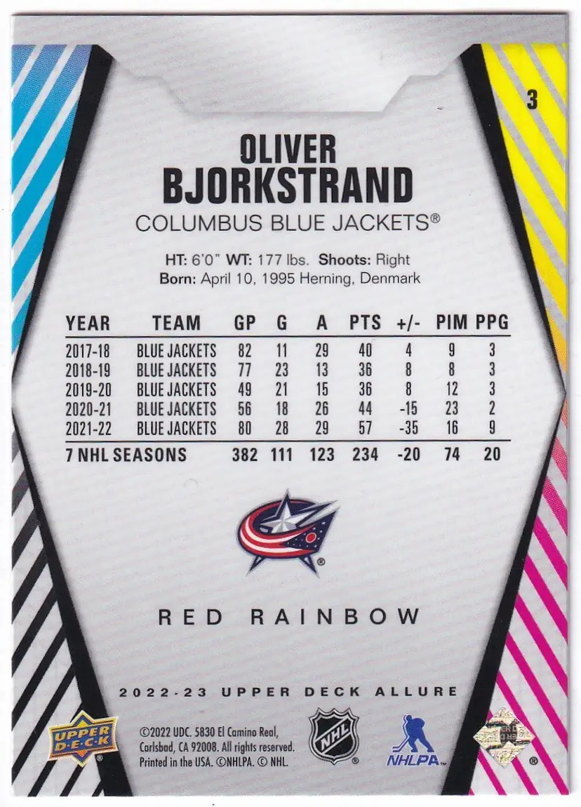 2022-23 Upper Deck Allure Red Rainbow #3 Oliver Bjorkstrand Columbus Blue Jackets
