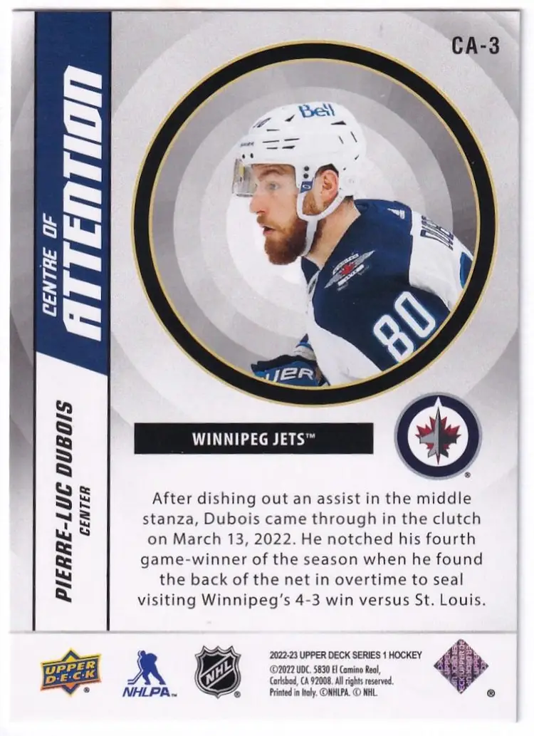 2022-23 Upper Deck Centre of Attention #CA3 Pierre-Luc Dubois Winnipeg Jets