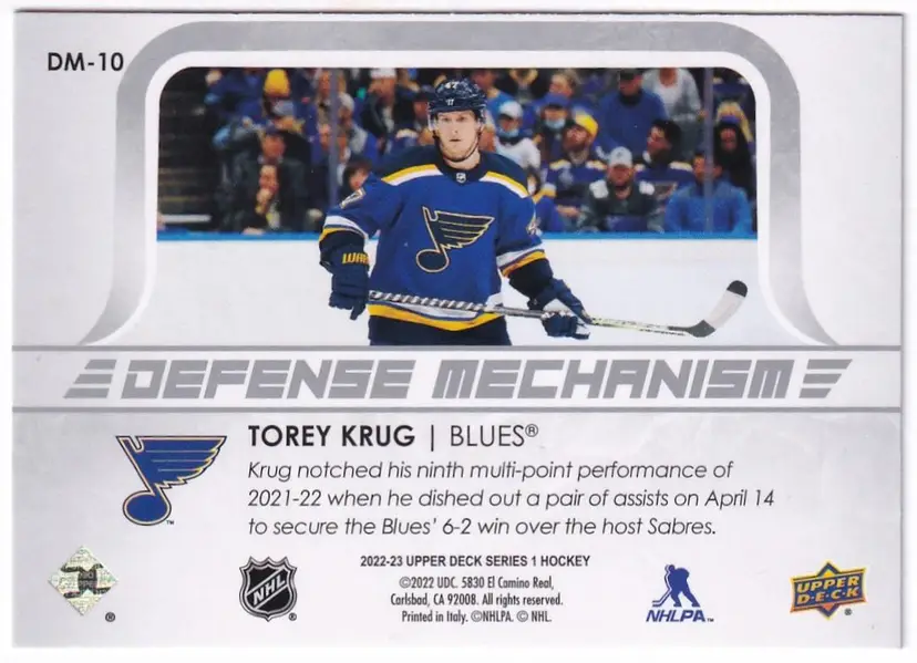 2022-23 Upper Deck Defense Mechanism #DM10 Torey Krug St. Louis Blues