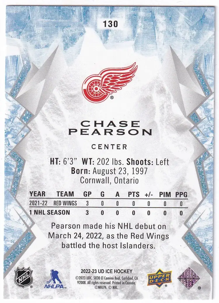 2022-23 Upper Deck Ice #130 Chase Pearson RC Detroit Red Wings