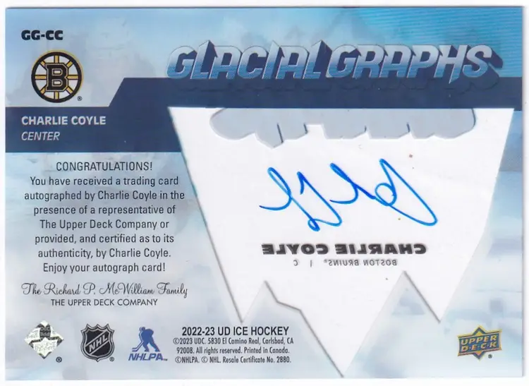 2022-23 Upper Deck Ice Glacial Graphs #GGCC Charlie Coyle Boston Bruins
