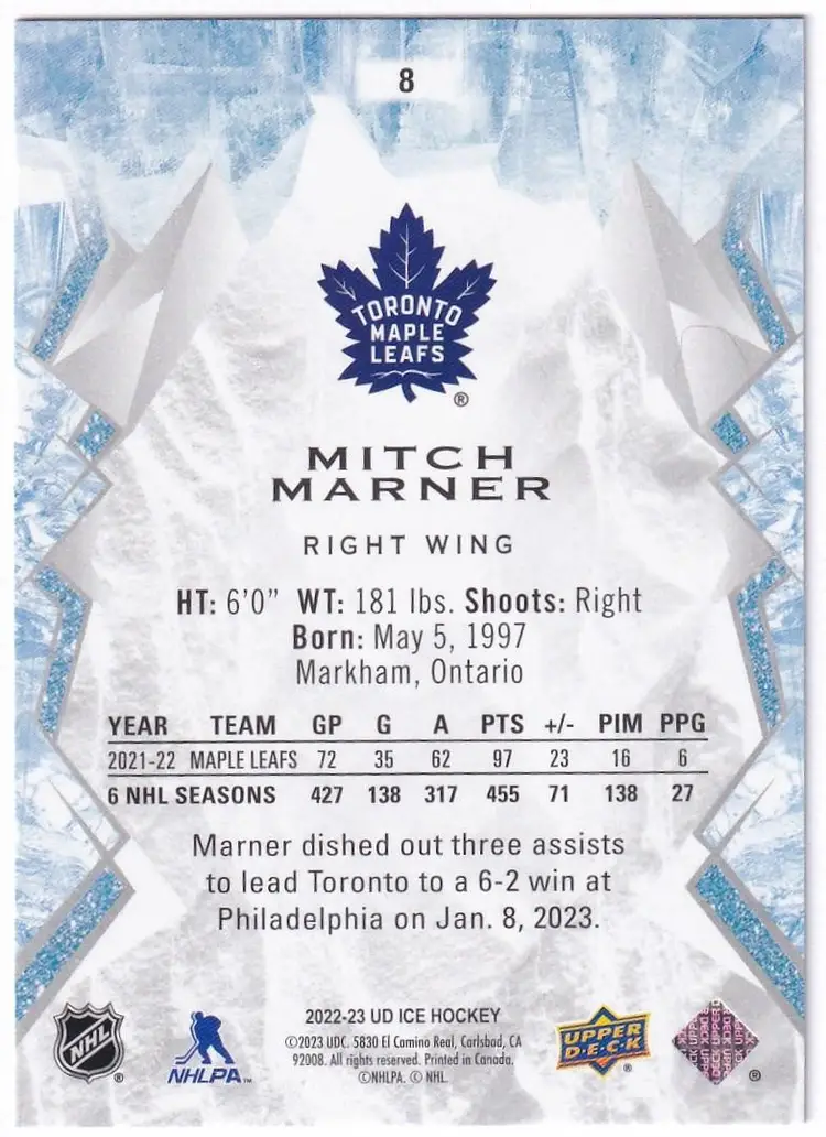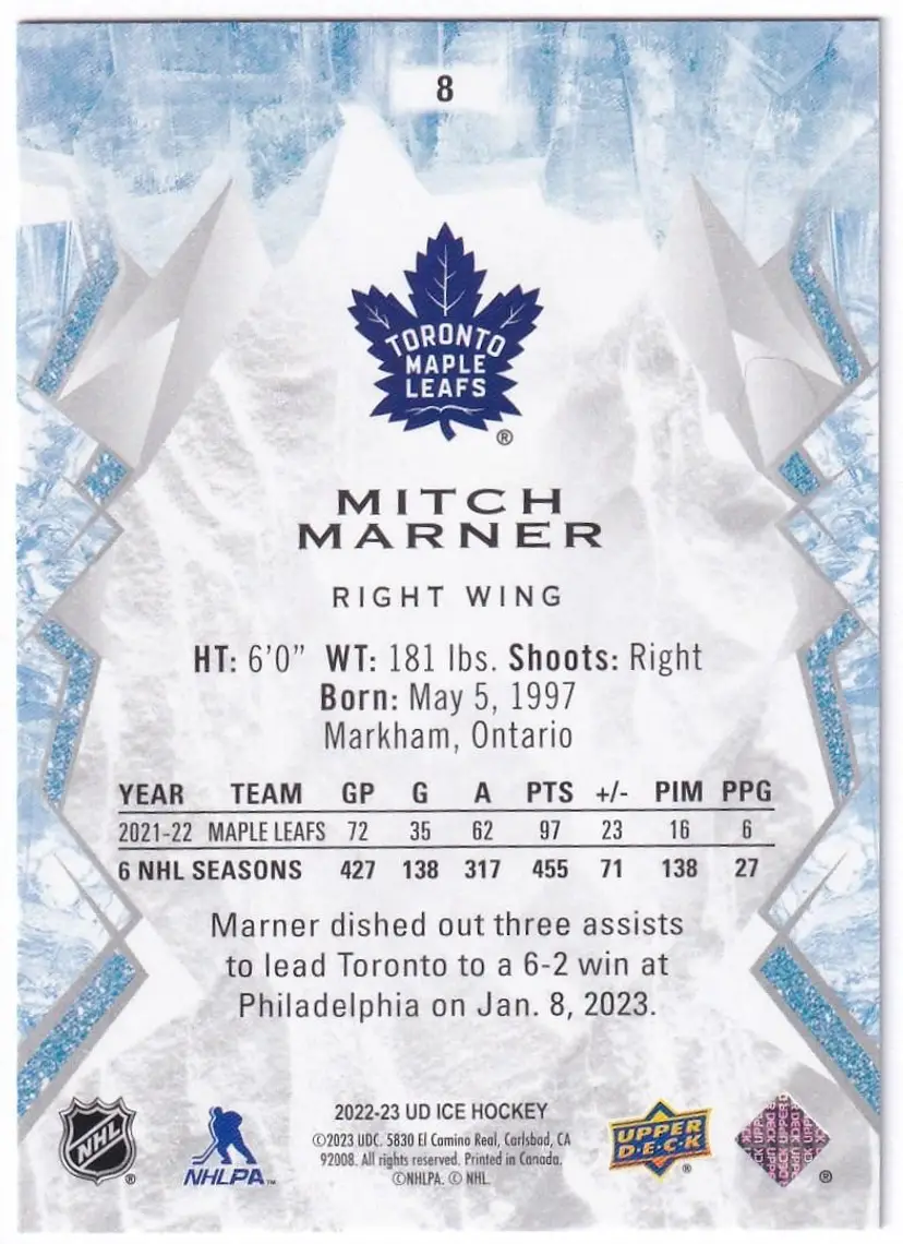 2022-23 Upper Deck Ice Green #8 Mitch Marner Toronto Maple Leafs