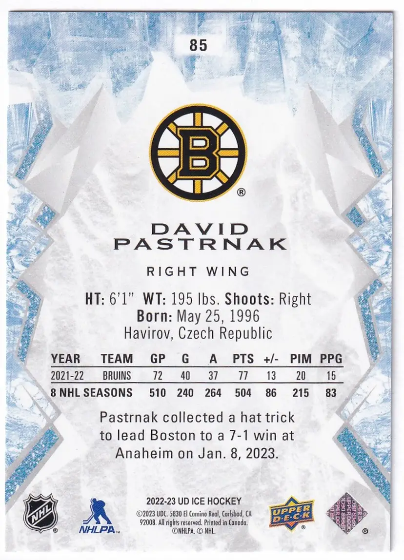 2022-23 Upper Deck Ice Green #85 David Pastrnak Boston Bruins