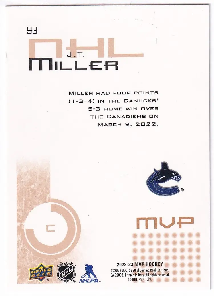 2022-23 Upper Deck MVP 20th Anniversary #93 J.T. Miller Vancouver Canucks