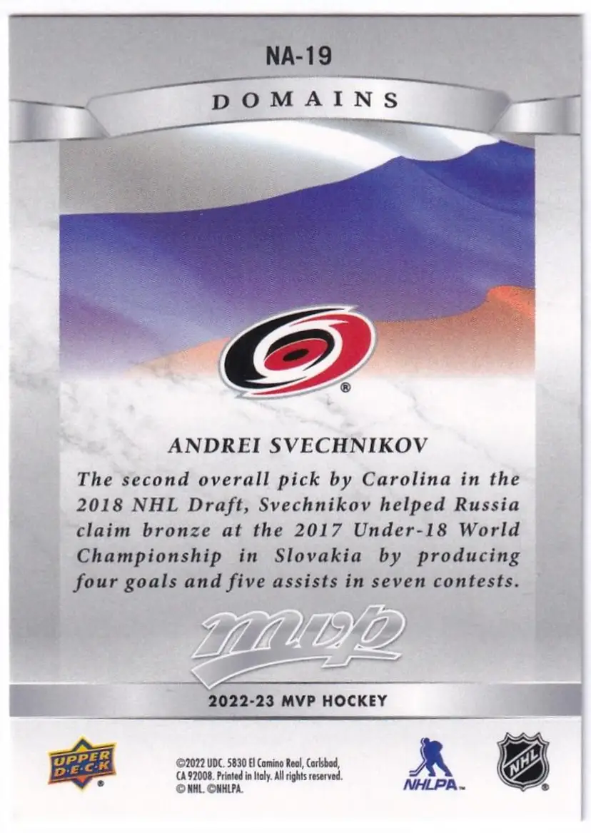 2022-23 Upper Deck MVP Domains #NA19 Andrei Svechnikov Carolina Hurricanes