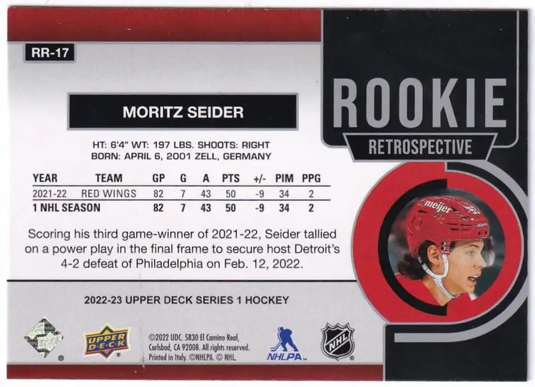 2022-23 Upper Deck Rookie Retrospective #RR17 Moritz Seider Detroit Red Wings