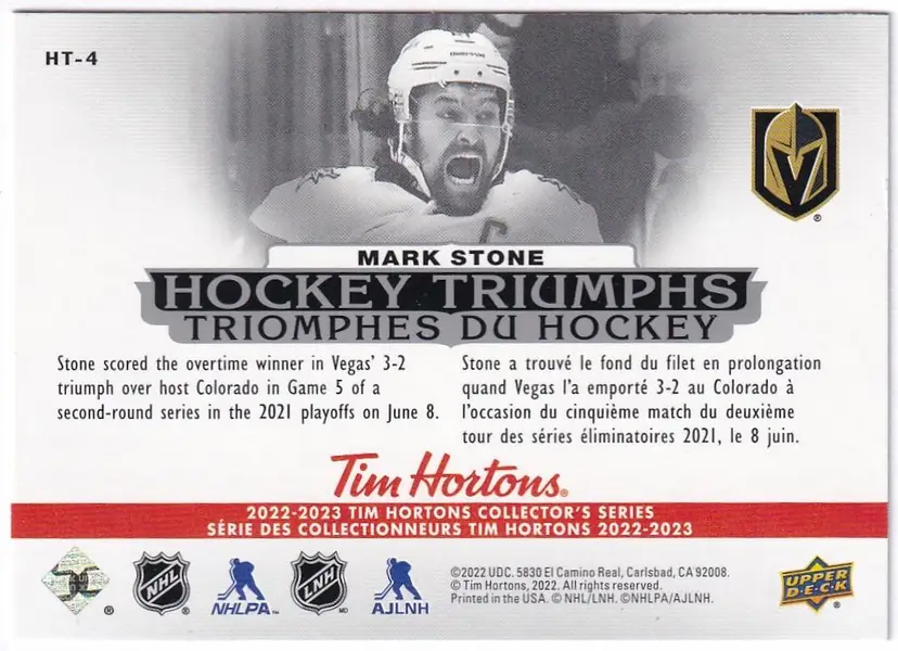 2022-23 Upper Deck Tim Hortons Hockey Triumphs #HT4 Mark Stone Vegas Golden Knights