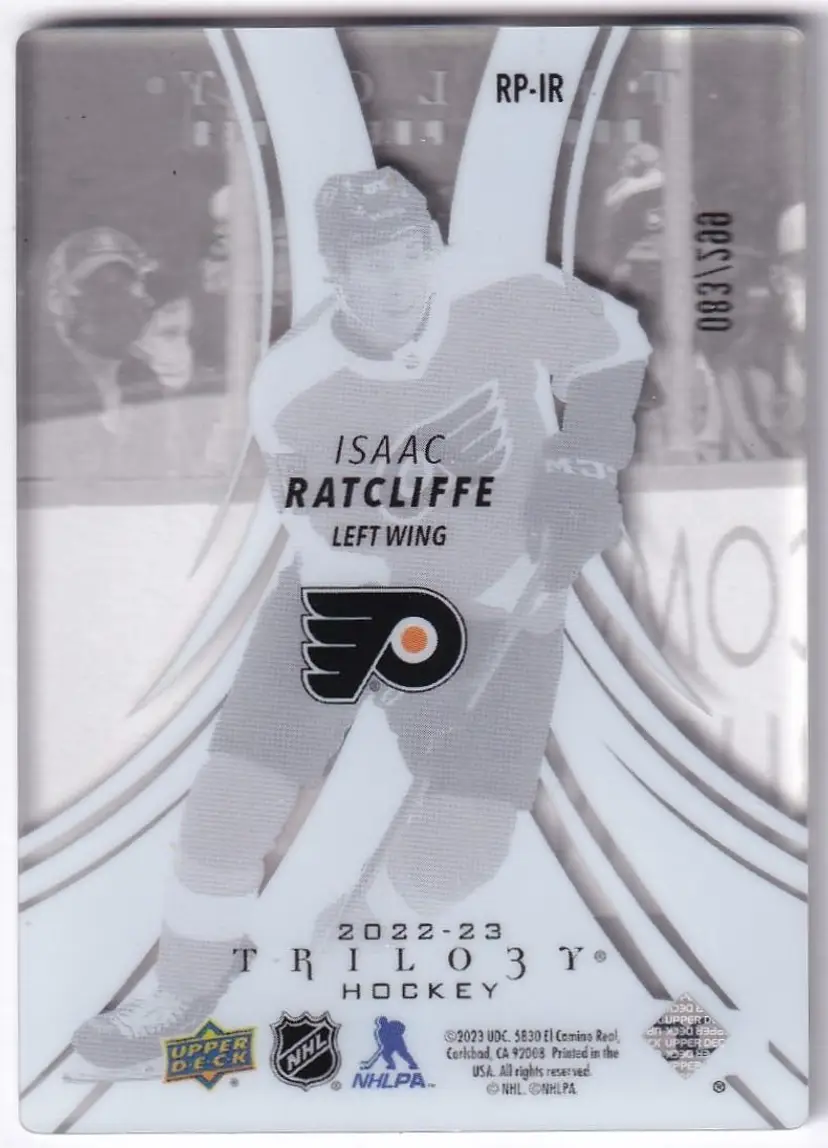 2022-23 Upper Deck Trilogy Rookie Premier #RPIR Isaac Ratcliffe Philadelphia Flyers