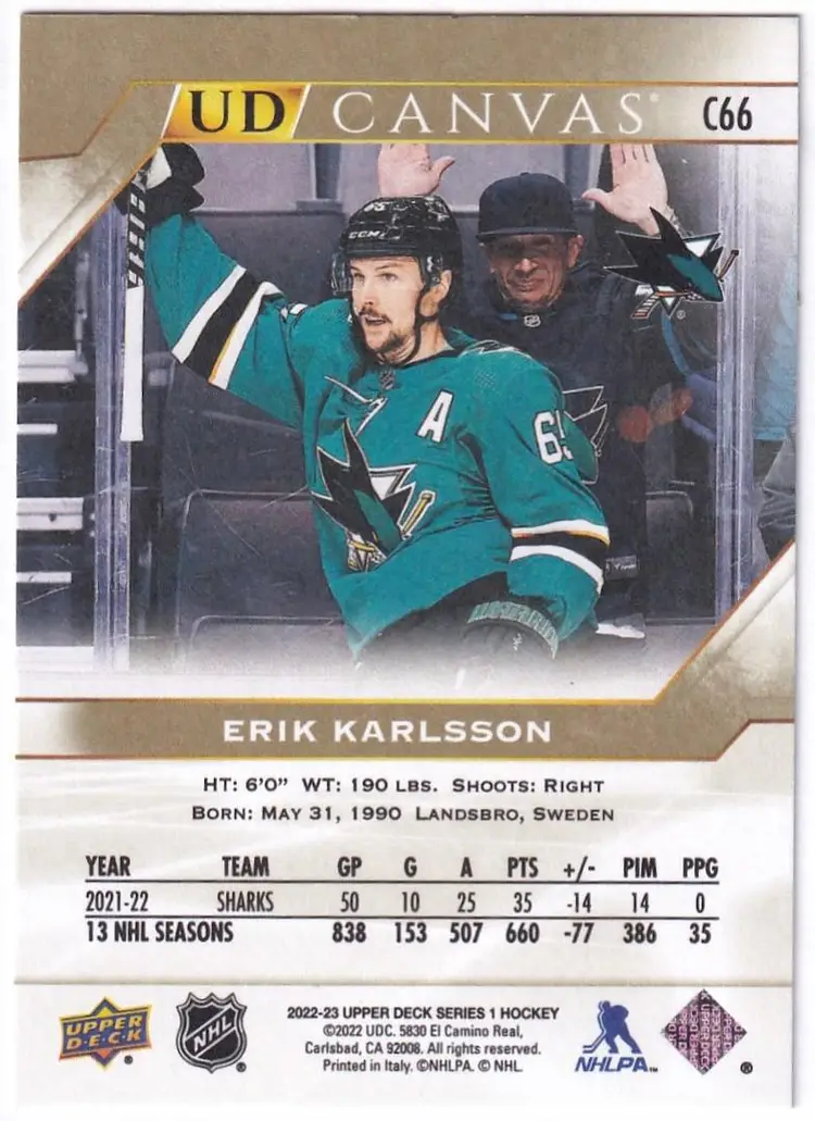 2022-23 Upper Deck UD Canvas #C66 Erik Karlsson San Jose Sharks