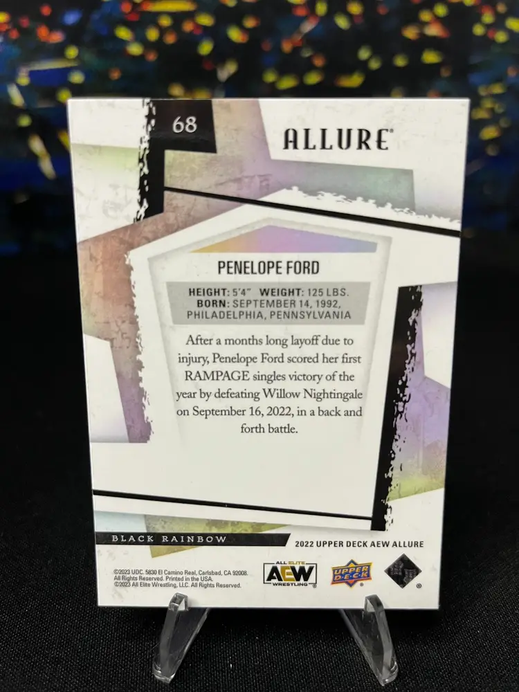 Dazzle your wrestling card trove with this radiant Penelope Ford Allure Rainbow Foil card. A stunning addition for AEW fans and collectors who admire the fierce and fabulous Superbad Girl!