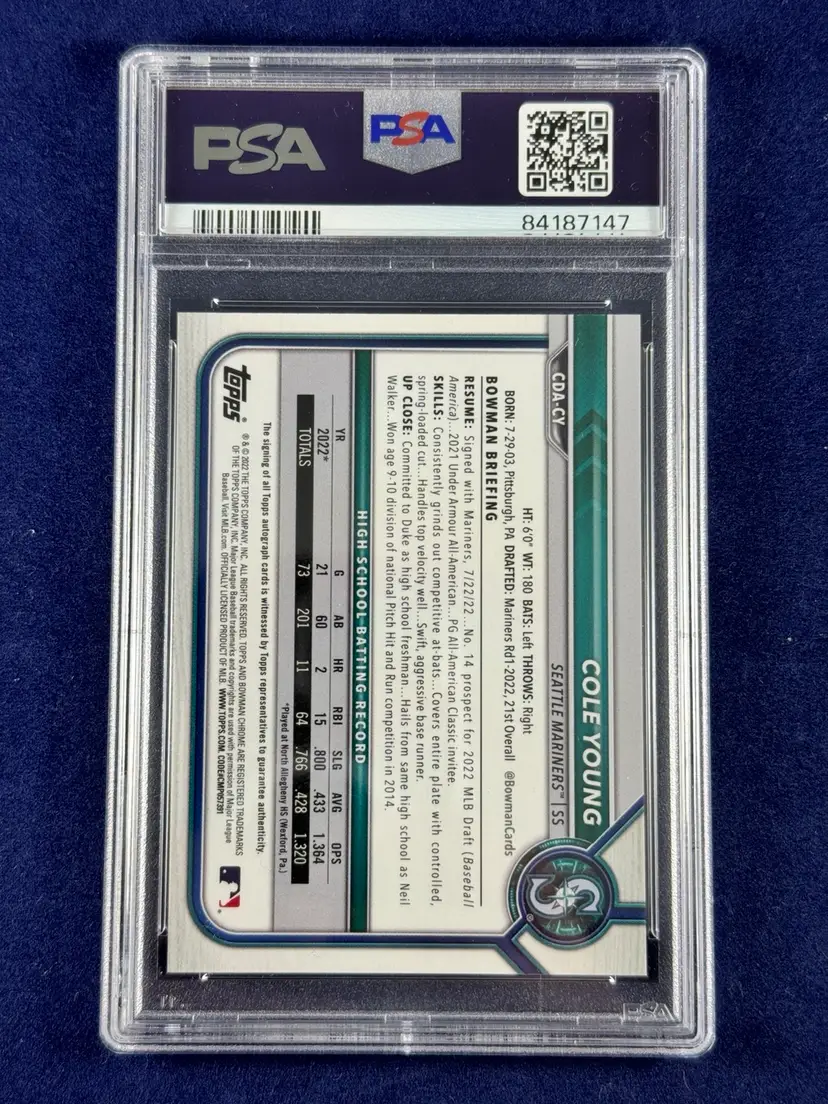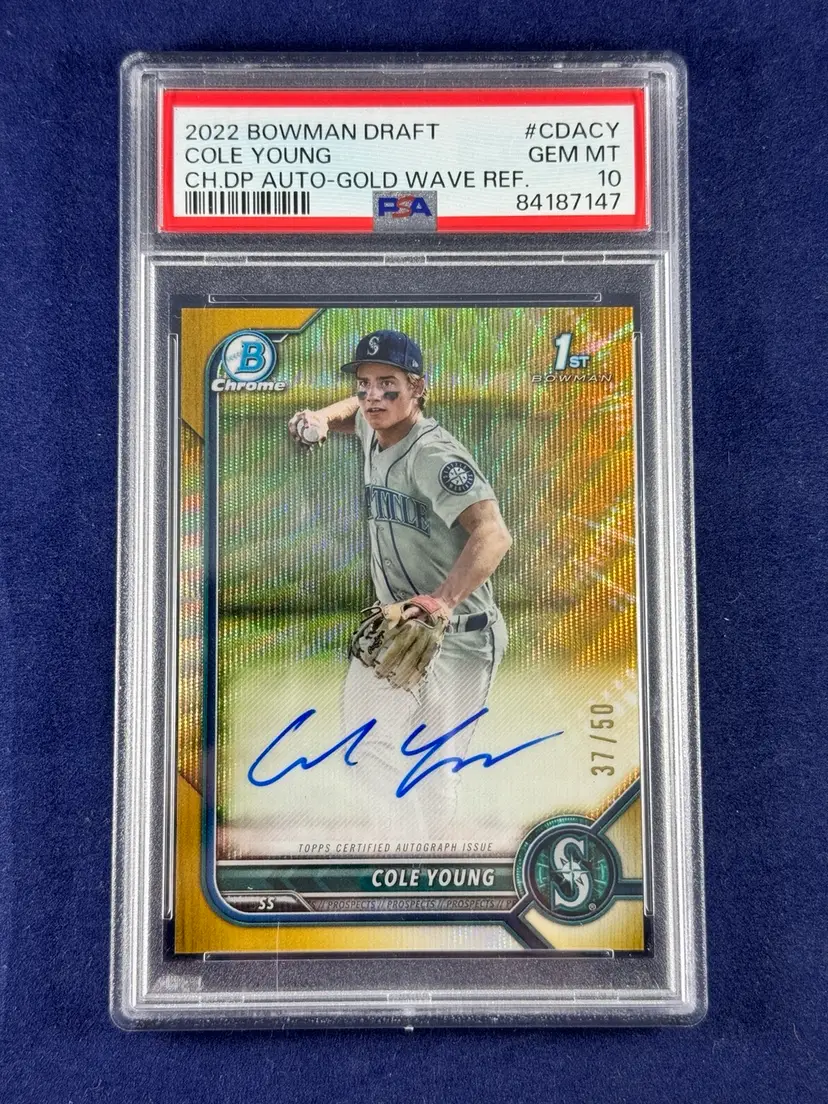 2022 Bowman Draft Chrome Cole Young Auto Gold Wave Refractor PSA 10