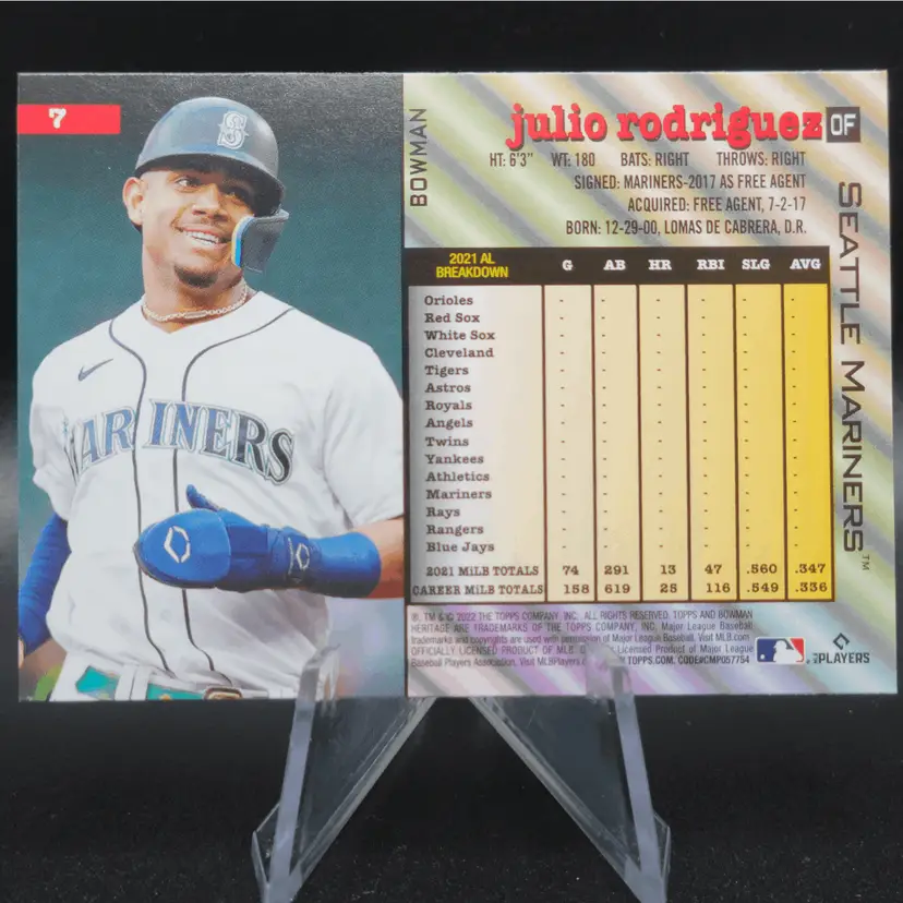 2022 Bowman Heritage #7 Julio Rodriguez RC Seattle Mariners. Ships free PWE.