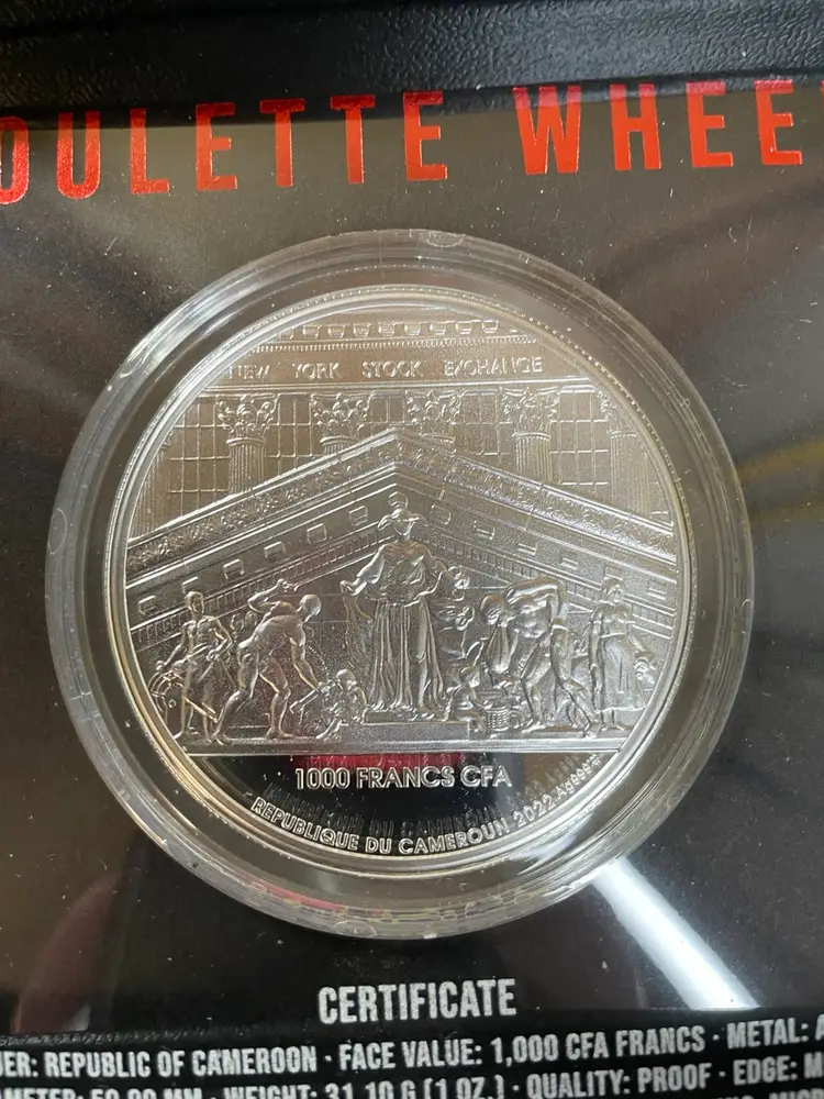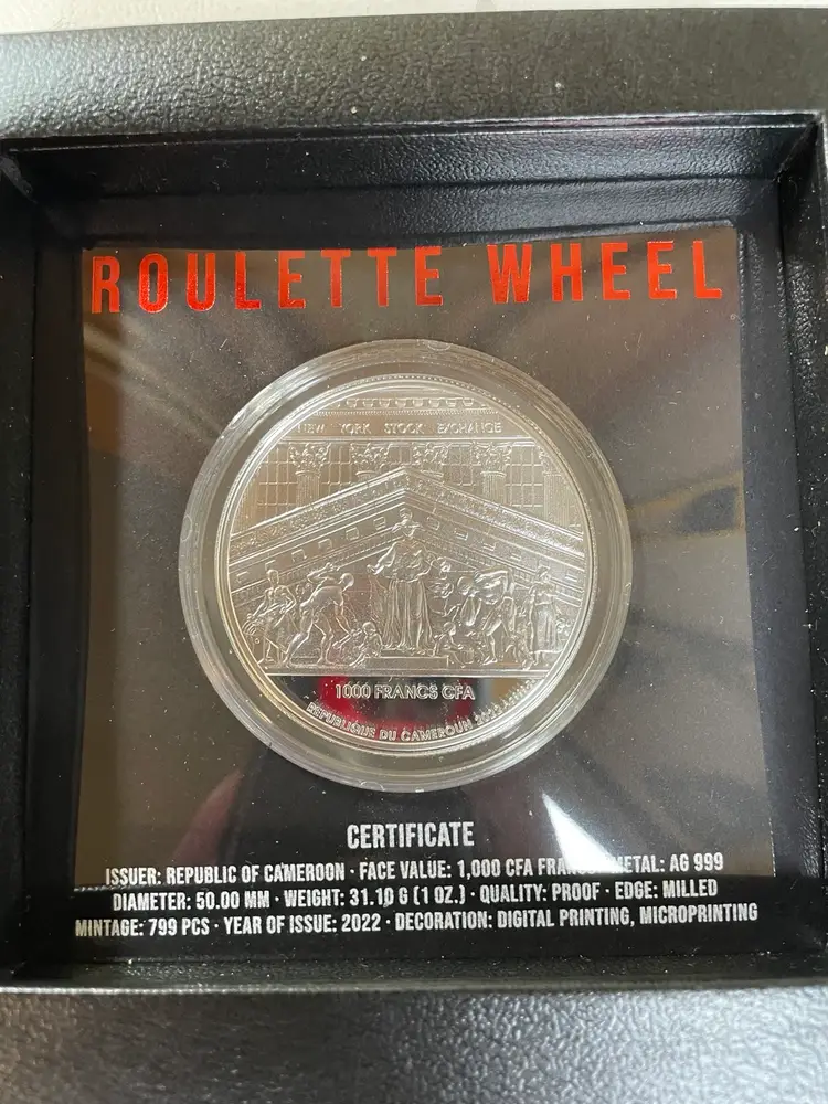 2022 Cameroon Proof 1 oz Roulette Wheel. Limited to 799!