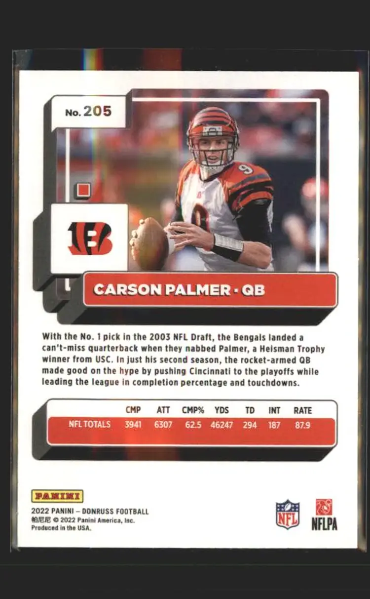 2022 Donruss #205 Carson Palmer Blue Press Proof - (139) - Cincinnati Bengals