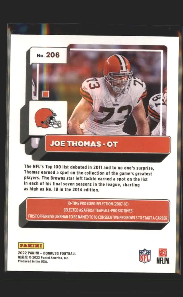 2022 Donruss #206 Joe Thomas Blue Press Proof - (139) - Cleveland Browns