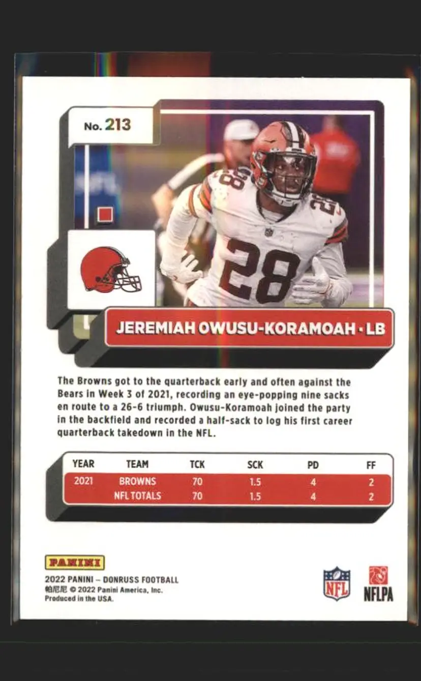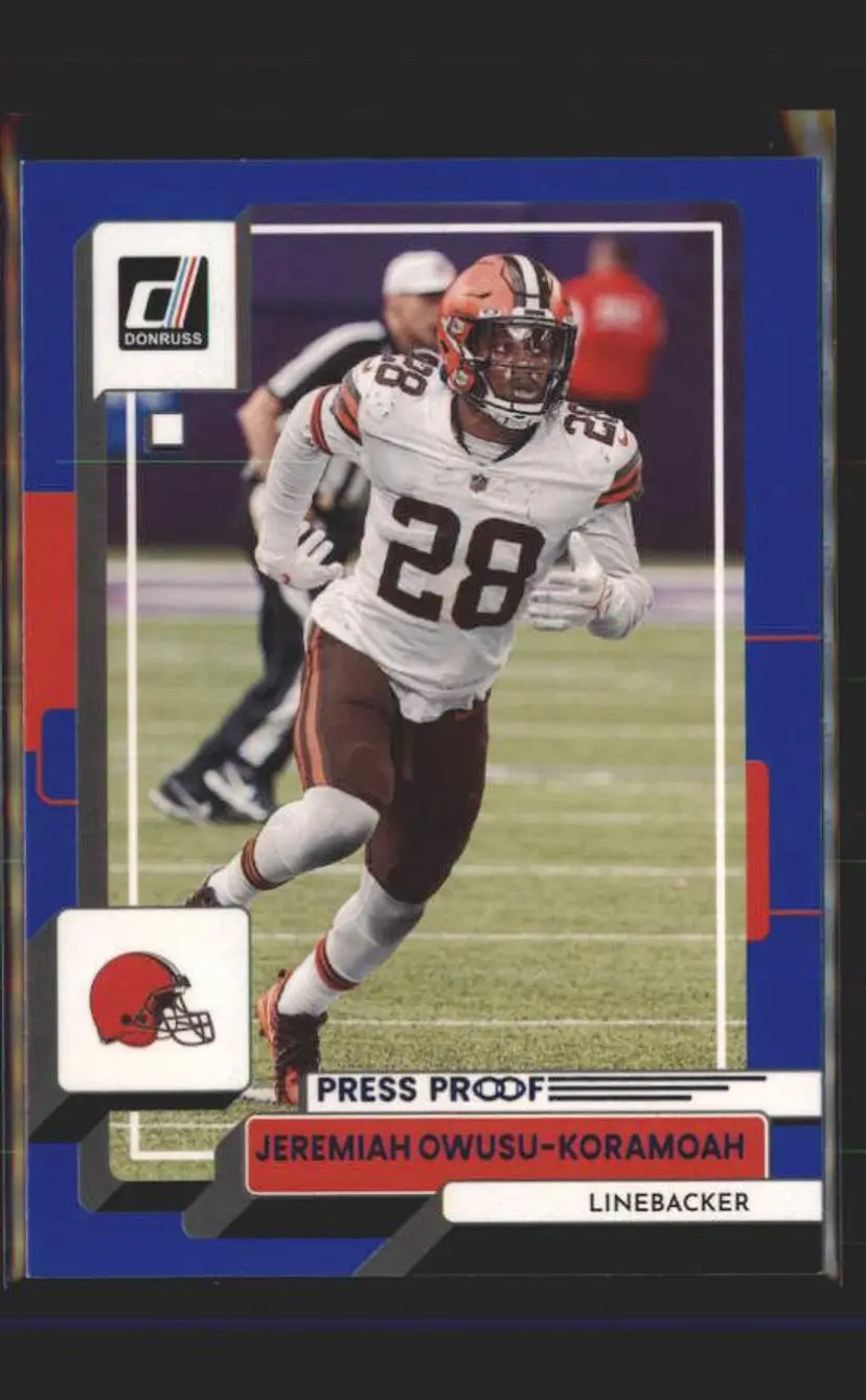 2022 Donruss #213 Jeremiah Owusu-Koramoah Blue Press Proof - (139) - Cleveland Browns