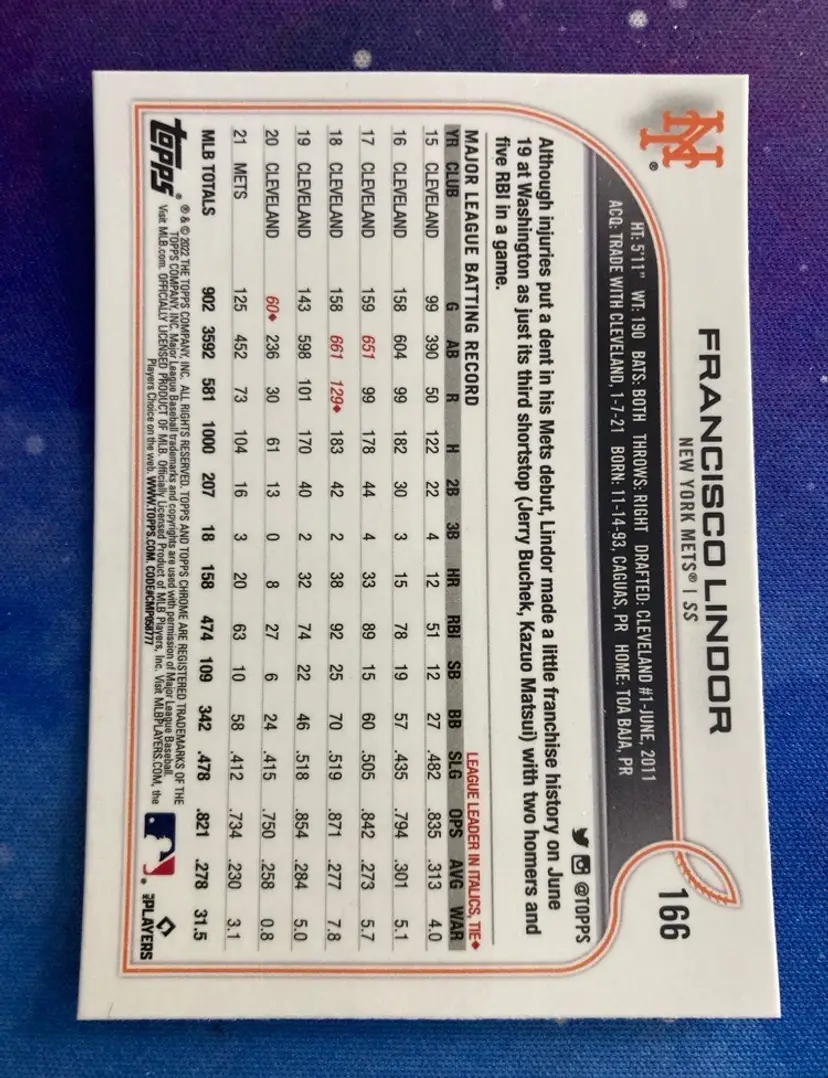 2022 Francisco Lindor Topps Chrome Ben Baller #166 New York Mets