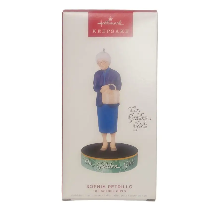 Celebrate the season with Hallmark's 2022 Golden Girls Sophia Petrillo Keepsake Ornament. Picture it: sharing laughs all season long with a little help from Sophia Petrillo, the outspoken octogenarian who shares a Miami home (and plenty of cheesecake) with Rose, Dorothy, and Blanche in "The Golden Girls." This Christmas tree ornament features Sophia clutching her signature wicker handbag and plays audio clips of some of her hilarious lines from the popular TV sitcom - requires two (2) LR44 replaceable batteries (included). • 2022 Hallmark Keepsake ornament • Golden Girls' Sophia Petrillo design • Crafted from durable plastic • Size Approx. 2.25 x 5 x 2.25 • Artist Anita Marra Rogers. New in Original Box.