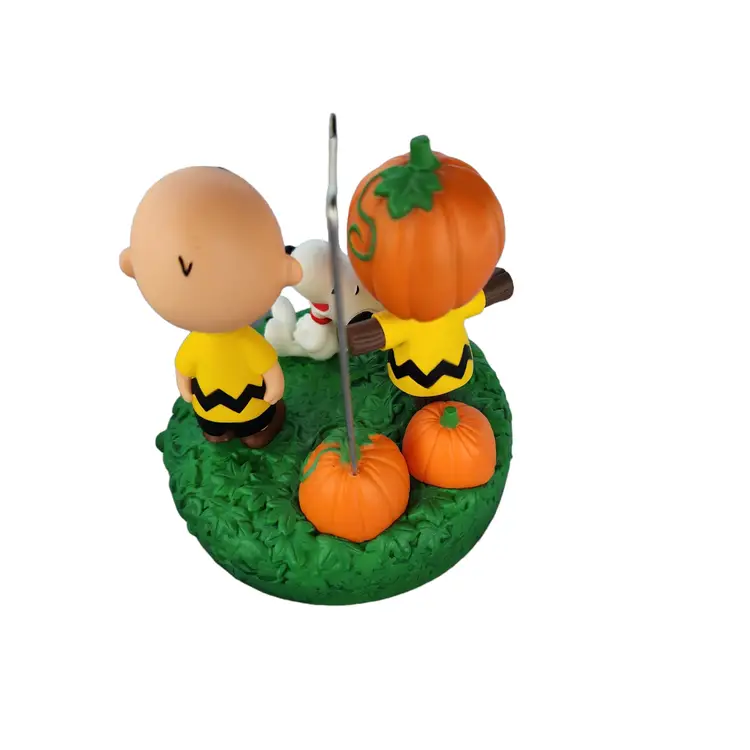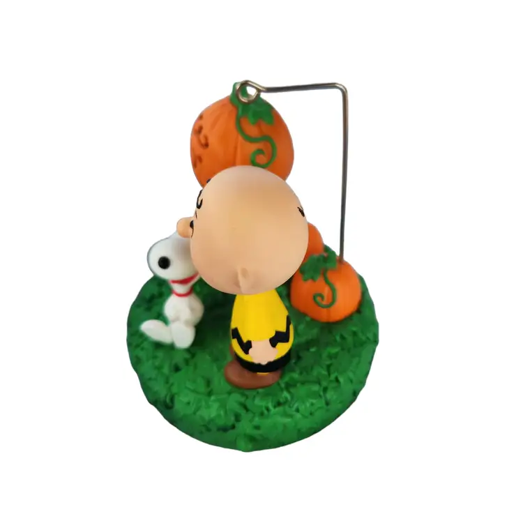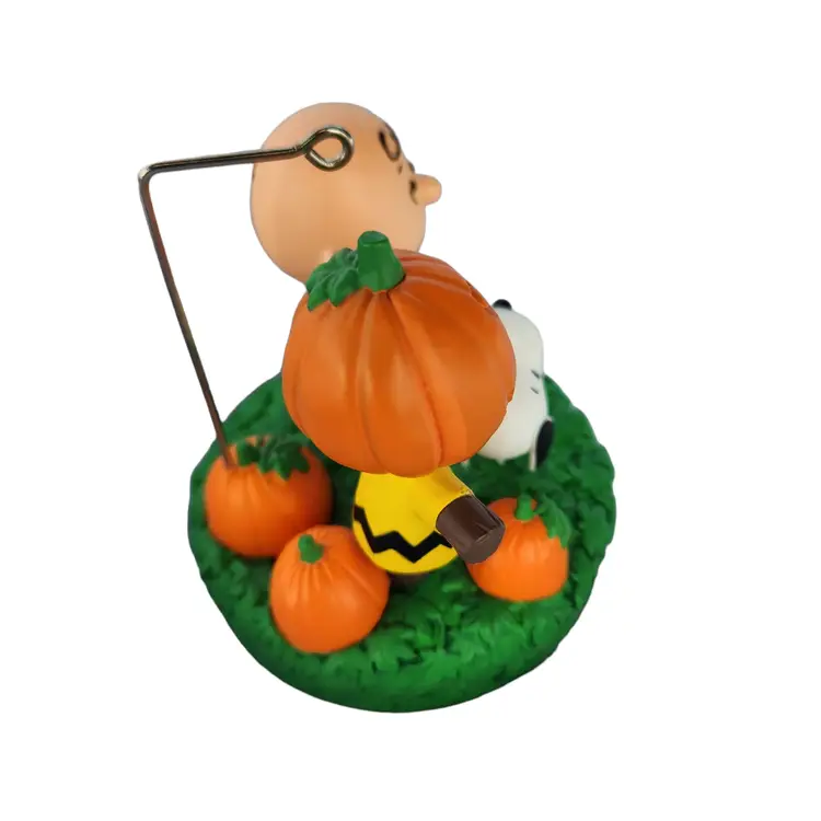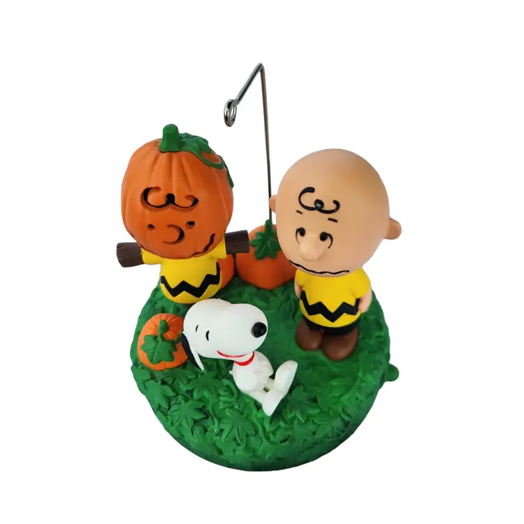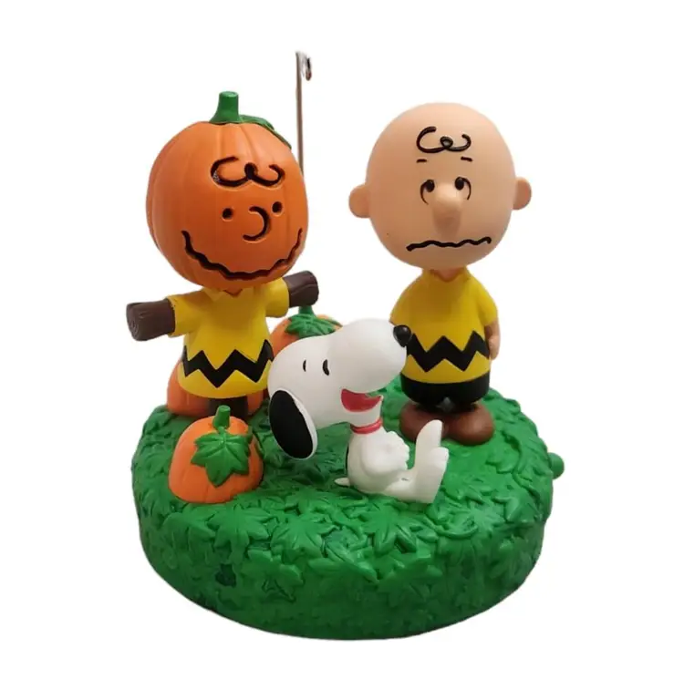 Celebrate the season with the 2022 Hallmark Peanuts Snoopy's Scarecrow Shenanigans Ornament. This visit to the pumpkin patch didn't go quite as Charlie Brown had planned. Have a laugh with this Halloween ornament that features Snoopy chuckling as Charlie Brown comes face to face with a scarecrow that looks a little too familiar. Press the button to see the jack-o'-lantern flicker and hear instrumental music while Snoopy cackles at Charlie Brown's "Good grief." - Requires three (3) LR44 replaceable batteries (NOT included).