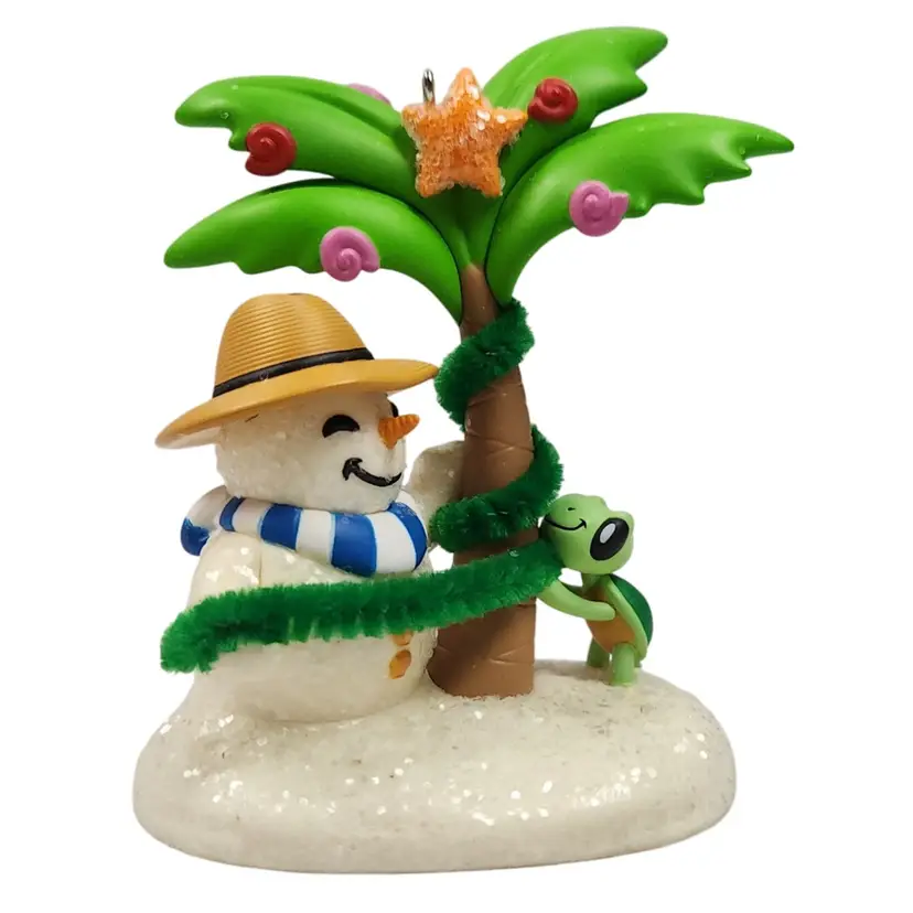 Enjoy a white sand Christmas with Sandal the Sandman! This cute Christmas tree ornament features Sandal and his sea turtle friend as they decorate a palm tree with seaweed garland, seashell ornaments and a starfish topper. Join in the fun each year as Sandal celebrates the holidays in his own tropical way. • ARTIST SIGNED by Keepsake Artist Allie Jachimowicz. - There might be slight variation in location of artist signature. • Size Approx. 3 x 4 x 2.3 • 1st in the Sandal the Sandman Keepsake ornament series. New in the original box. Original box may have minor wear due to storage. Item was opened for signature & pictures.