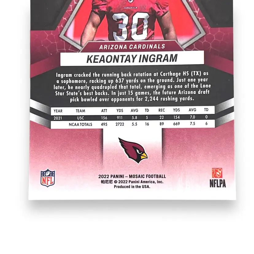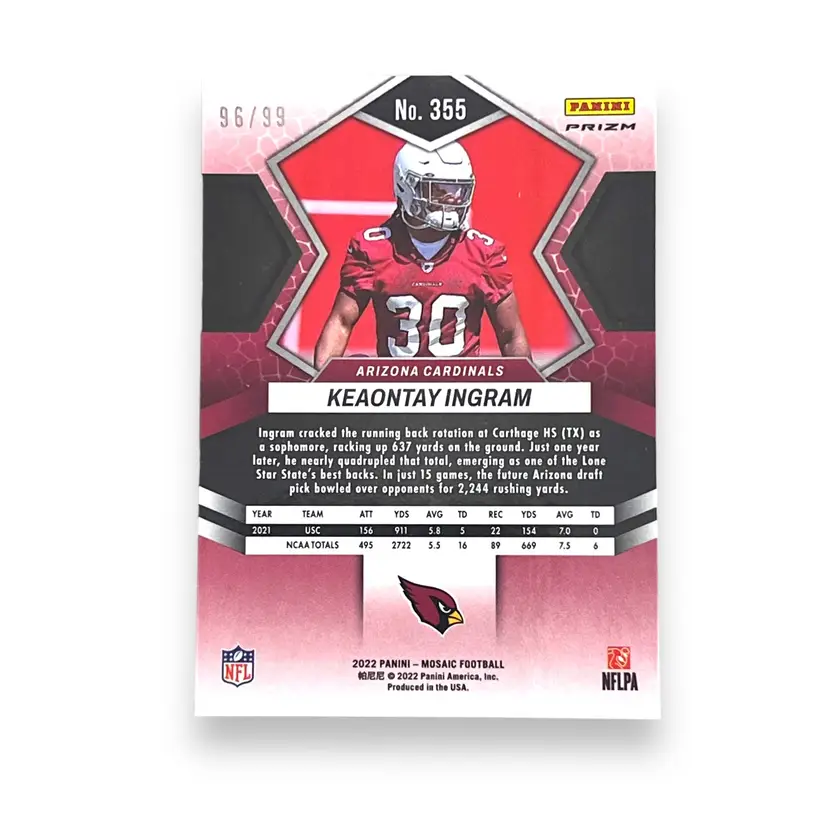 Here We Have a 2022 Panini Mosaic Keoantay Ingram RC Blue Prizm 96/99 Arizona Cardinals #ed