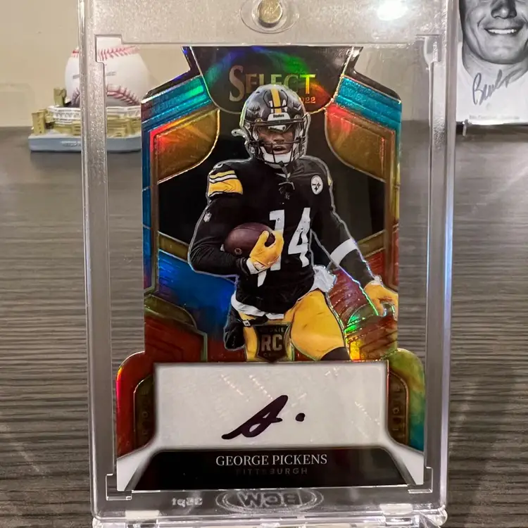 2022 Select George Pickens 14/25 (Jersey # Serial) Rookie Autograph Short Print Tie-Dye Die-Cut Prizm Card No. RS-GP Georgia Bulldogs & Pittsburgh Steelers