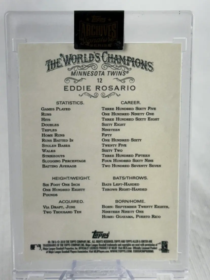 2022 Topps Archives Allen and Ginter #12 Eddie Rosario Twins On Card Auto #50/56