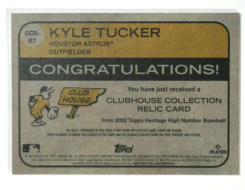 2022 Topps CCR-KT HN Heritage Kyle Tucker Houston Astros Game Used Relic Baseball
