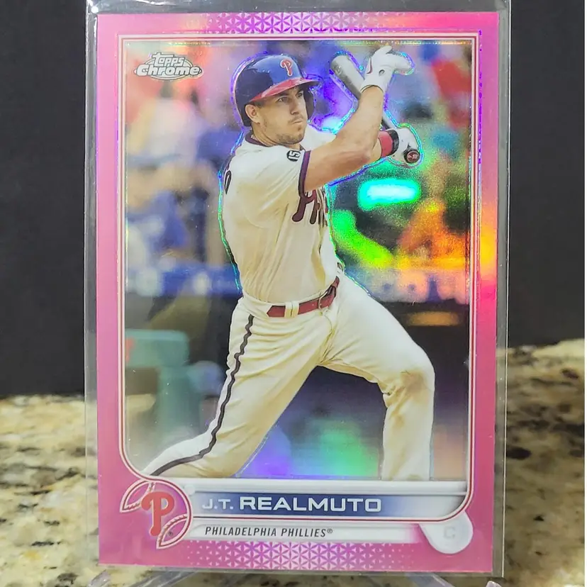 2022 Topps Chrome Baseball J.T. Realmuto Pink Refractor Base Card #13 Phillies