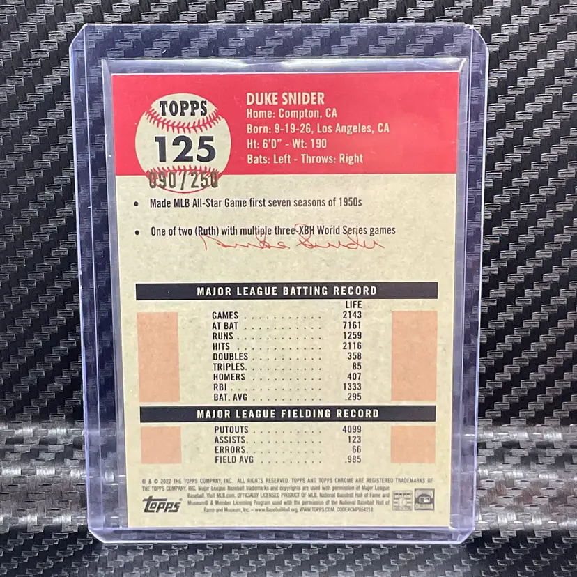 2022 Topps Chrome Platinum Yellow RayWave Refractor Duke Snider #125 90/250 Brooklyn (Los Angeles) Dodgers