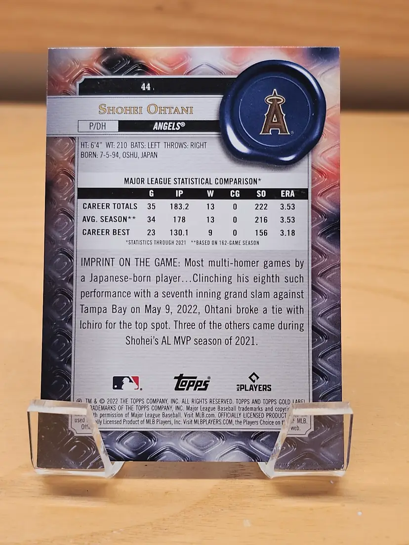 2022 Topps Gold Label Baseball Class 2 Shohei Ohtani Los Angeles Angels Card #44.