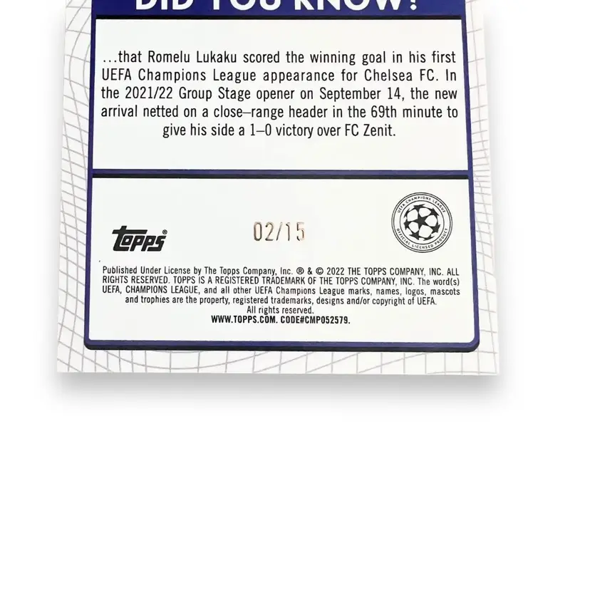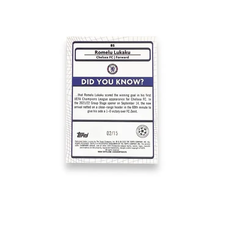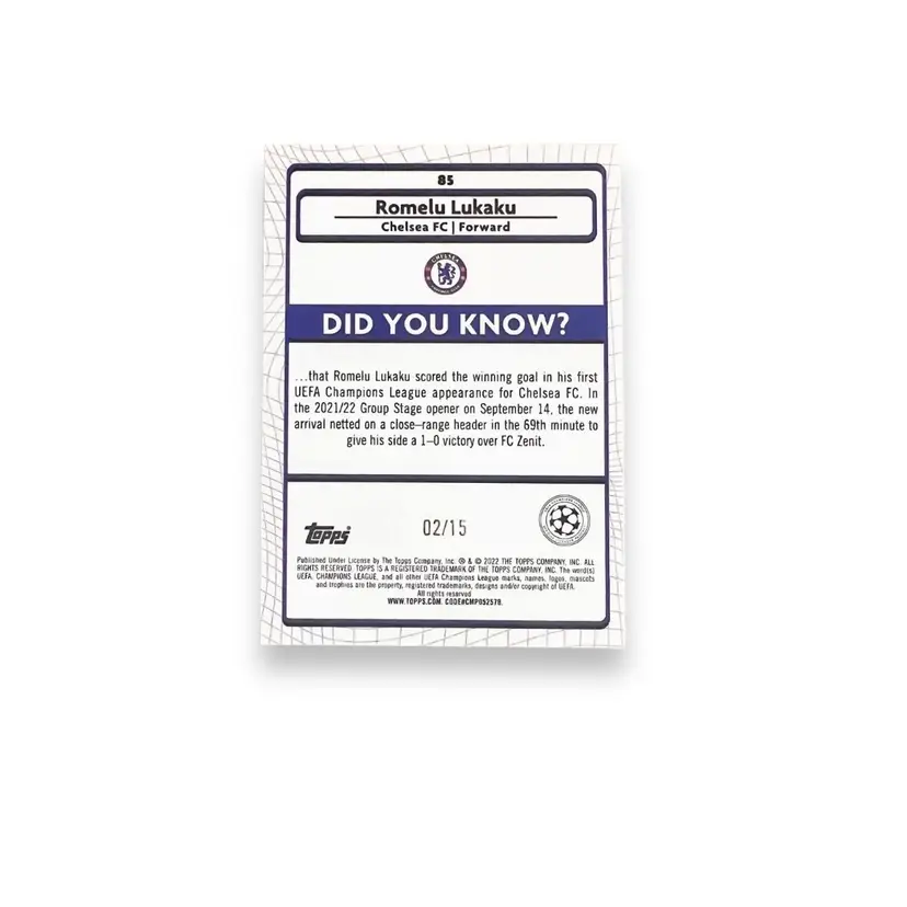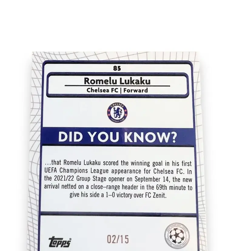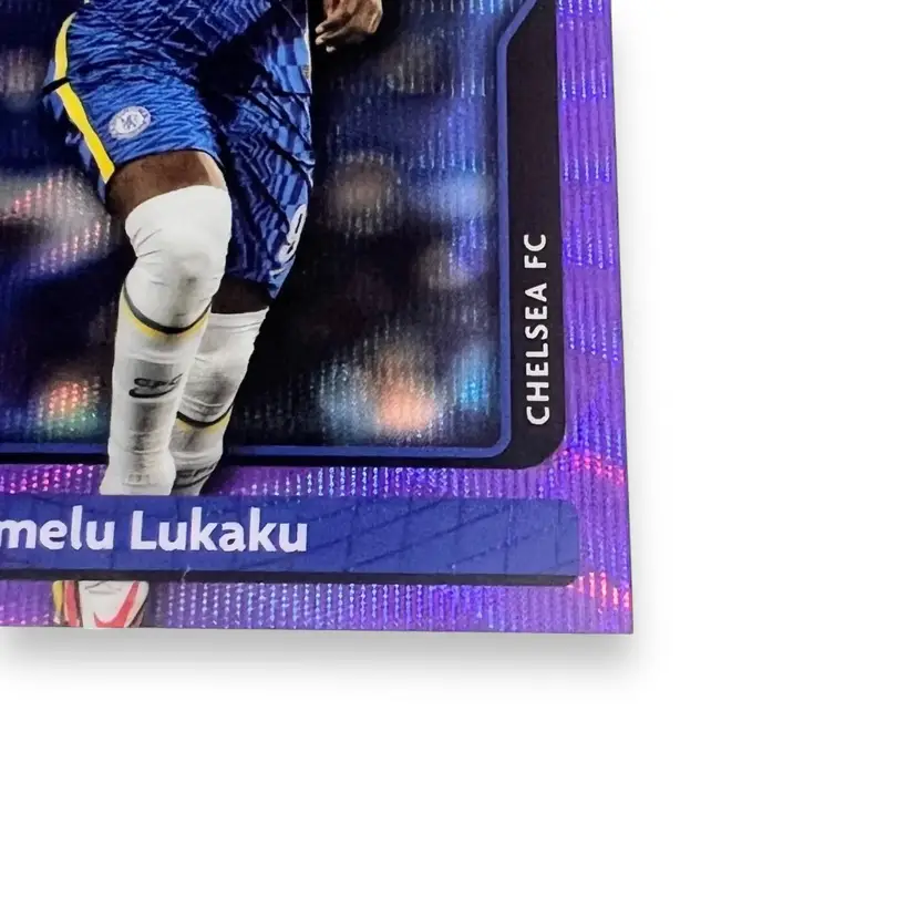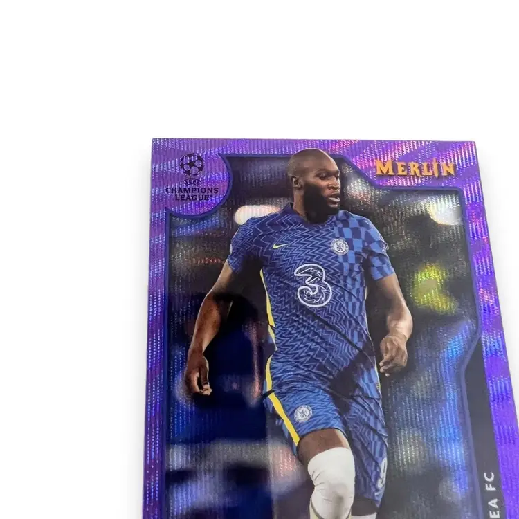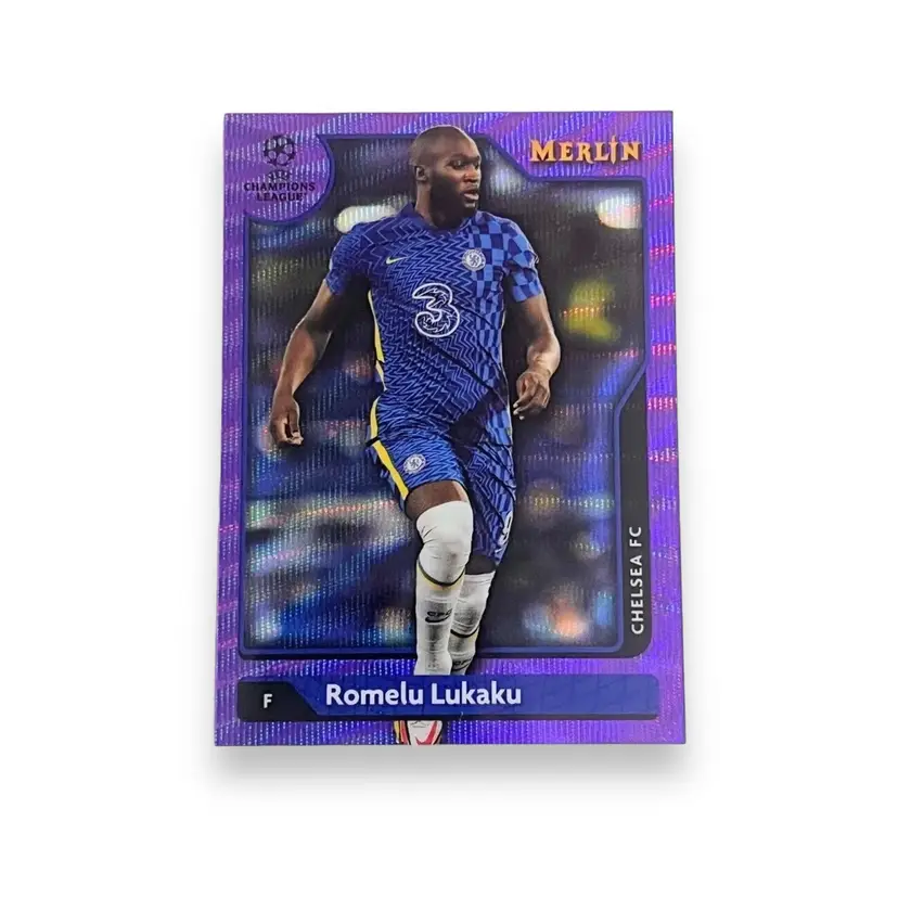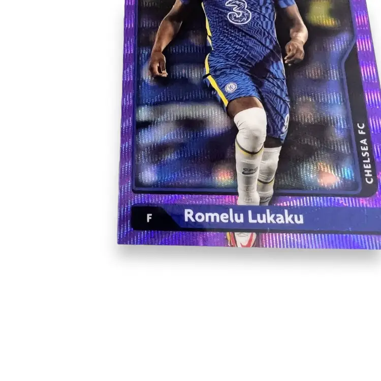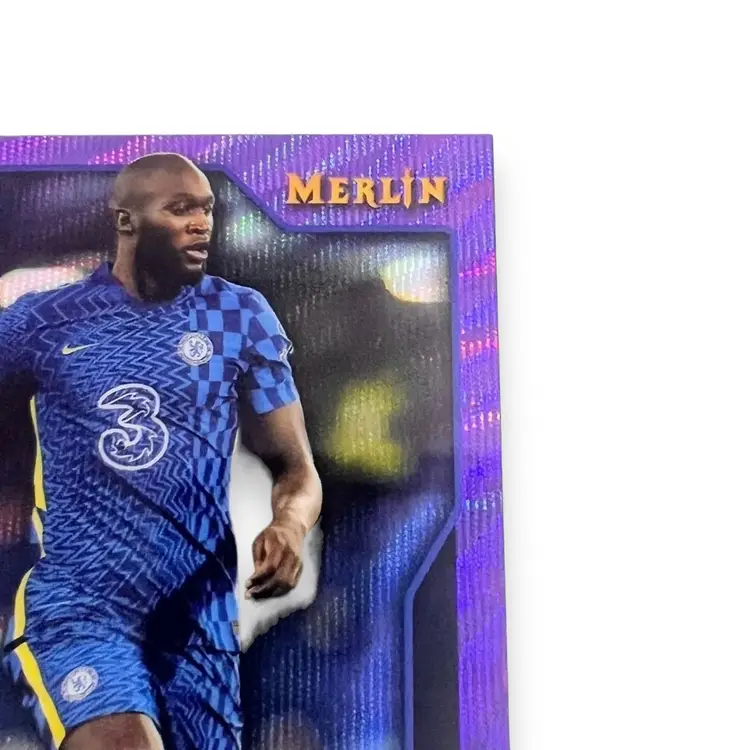 Here We Have a 2022 Topps Merlin Romelu Lukaku Purple Wave Refractor Numbered 02/15 Chelsea