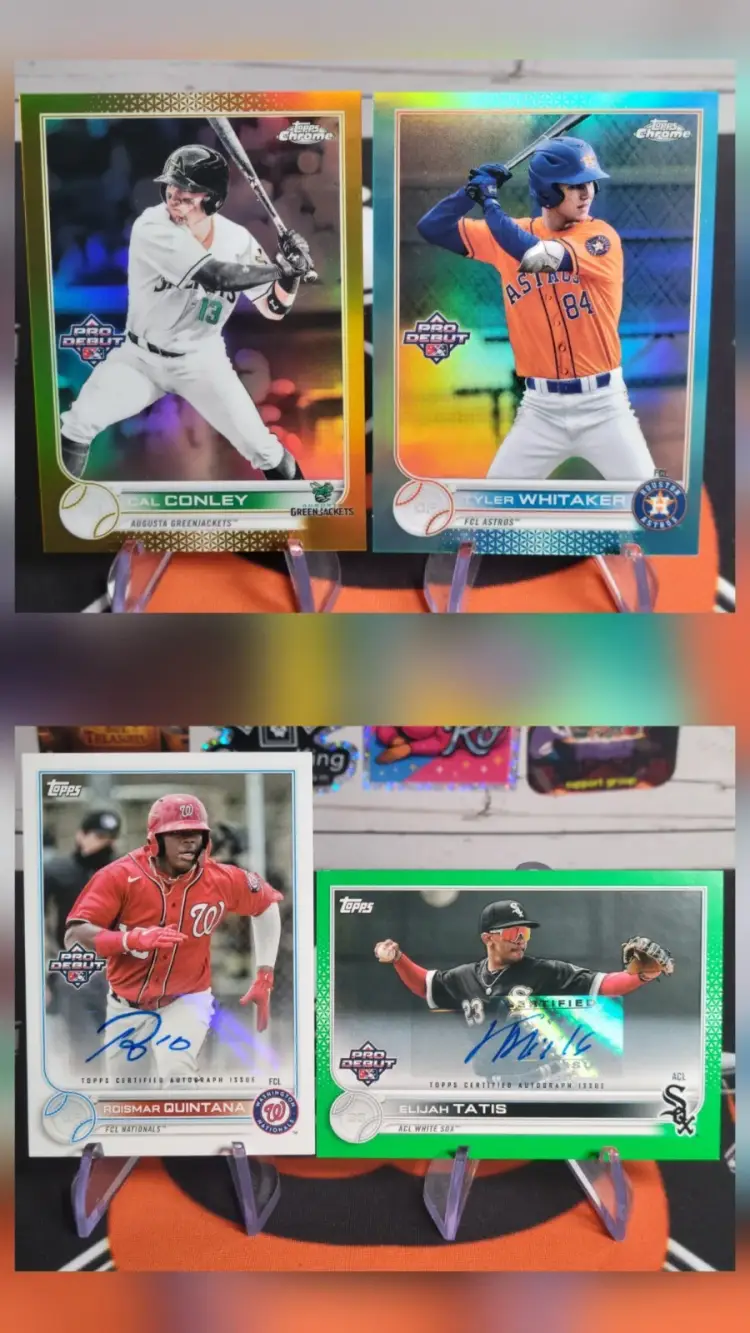 This listing is for a 4-card lot from 2022 Topps Pro Debut, featuring a mix of on-card autographs and serial-numbered prospect cards from Minor League and developmental league affiliates.