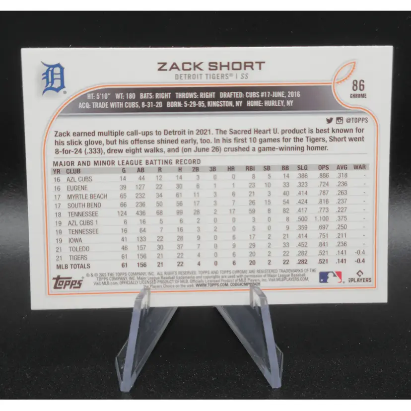 2022 Topps Sonic Chrome #86 Zack Short Black & White RayWave Detroit Tigers. Ships free PWE.