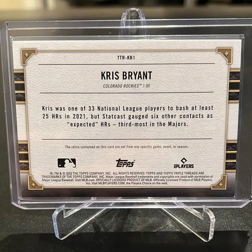 2022 Topps Triple Threads Kris Bryant 14/18 Game Used Bat & Jersey Short Print Colorado Rockies Card No. 14/18