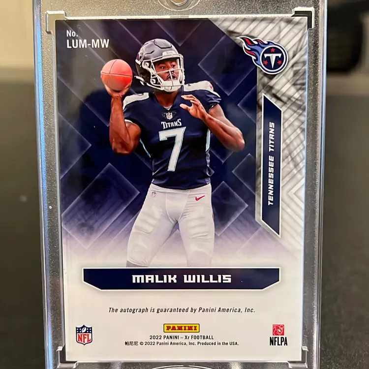 2022 XR Malik Willis 77/99 Rookie Autograph Luminous Endorsements Tennessee Titans Card No. LUM-MW